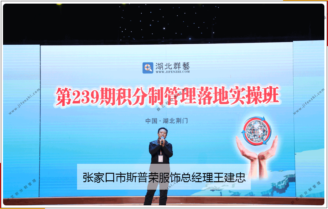 張家口市斯普榮服飾有限公司總經(jīng)理王建忠分享道:“我們公司從18年引進(jìn)也用了5年多了。在這5年當(dāng)中,我也有幾點(diǎn)體會吧!因為我們公司是從96年做起的,到現(xiàn)在也有20幾個年頭了。在這些年的學(xué)習(xí)當(dāng)中呢,可以說也聽了好多好多的課程。比如:思八達(dá)的、比如聚商圈的,我們還引進(jìn)了阿米巴。所有這些我感覺有好多落起地來聽著挺好,落地挺難。但是聽了李榮老師的積分制管理,一步一步落地以來,我感覺這套方法,這套工具是非常適用的。我就說有三點(diǎn)明顯的改變。第一點(diǎn),用了這套積分制管理,包括快樂會議這個好的模式之后,我感覺我們公司所有的員工,精神面貌有了很大的改觀。第二點(diǎn),用了這個積分制,這套工具以后每年年底給高管給管理層的獎金分配這個事上非常的輕松了,而且大伙很高興沒有任何怨言。第三點(diǎn)收獲,過去好多員工是要他干,現(xiàn)在用了這套方法之后呢,好多員工心理變了,變成了我要干,這一點(diǎn)很厲害。我舉一個例子,我們公司有好幾個司機(jī),可以說司機(jī)不太好管,過去呢好多領(lǐng)導(dǎo)給他安排活,都找各種理由就給你拒了,要不就躲到,你找不著人,那么用了這套方法之后呢,這些人啊,主動的搶活干要活干。所以呢我感覺啊,優(yōu)點(diǎn)非常的多。我認(rèn)為,這套方法值得咱們中小企業(yè)好好學(xué)習(xí)。”