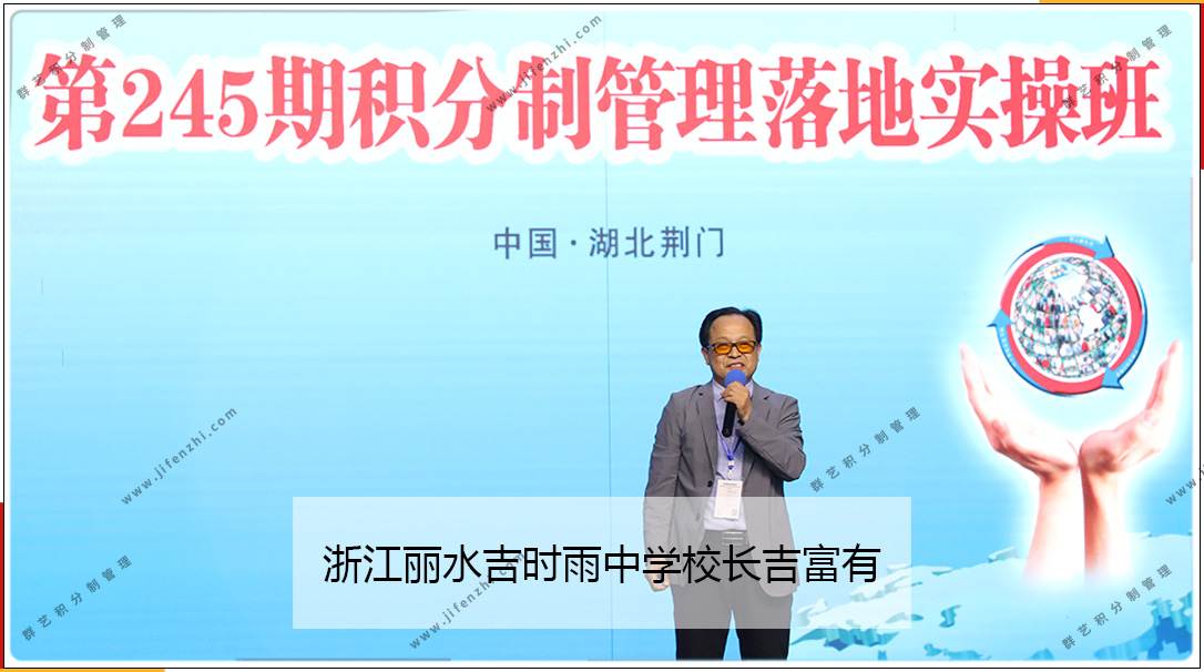 來自浙江麗水吉時(shí)雨中學(xué)的校長(zhǎng)吉富有分享到:“尊敬的李榮董事長(zhǎng),尊敬的群藝的家人們,還有我們245期的同學(xué)們,晚上好!我們?nèi)核嚥粌H是培養(yǎng)企業(yè)的搖籃,更是培養(yǎng)人才的搖籃。看我們今天登臺(tái)的這么多優(yōu)秀的人才,都是因?yàn)榉e分制,都是因?yàn)槔疃麻L(zhǎng)他造就了一個(gè)新的一個(gè)培養(yǎng)人才的搖籃。為了我們的企業(yè),為了我們企業(yè)的明天,我們帶著一種夢(mèng),帶著一種希望,來到了湖北群藝,我們來到了李董事長(zhǎng)他最偉大的課堂。我們聆聽了李董事長(zhǎng)關(guān)于積分制的理論、操守。說真話,我在我們李董事長(zhǎng)講話的同時(shí),我感覺到我們所有的學(xué)員,都要學(xué)習(xí)李董事長(zhǎng)的那種精神。我希望我的學(xué)校能夠成為積分制在全國做得最好的一所學(xué)校之一。所以說我?guī)е@種夢(mèng)想,我想跟我們245期的學(xué)員們,我們做一個(gè)承諾,在李榮董事長(zhǎng)的帶領(lǐng)下,我們一起繼往開來?!?/strong>