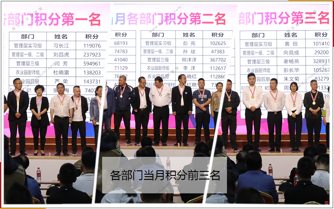 學(xué)習(xí)期間,學(xué)員現(xiàn)場(chǎng)觀摩了群藝員工大會(huì)暨快樂會(huì)議。大會(huì)現(xiàn)場(chǎng),公司對(duì)當(dāng)月各部門積分排名的第一、二、三名進(jìn)行了公布,并頒發(fā)了獎(jiǎng)勵(lì)。與此同時(shí),學(xué)員們對(duì)積分制管理有了深刻的感受,紛紛登臺(tái)將自己的學(xué)習(xí)心得與大家分享。